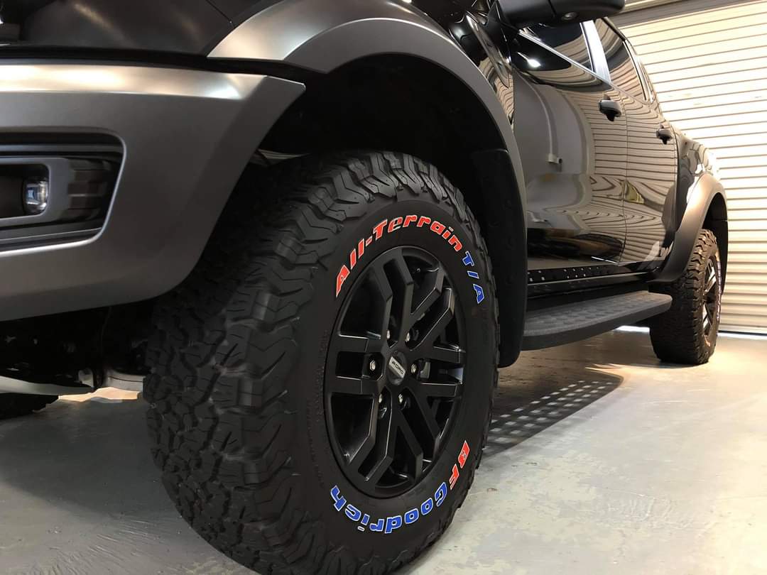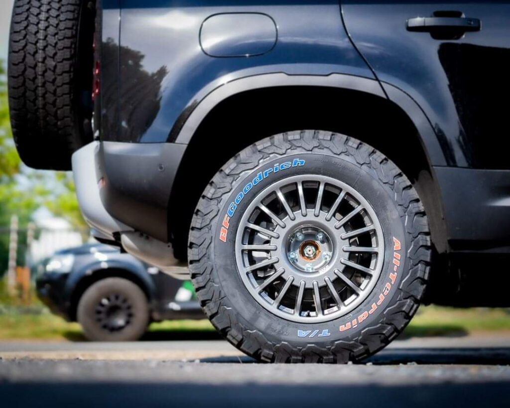El modelo Signature (rojo, blanco y azul) viene para todas las medidas de llantas BFGoodrich de los modelos “All Terrain” y “Mud Terrain”